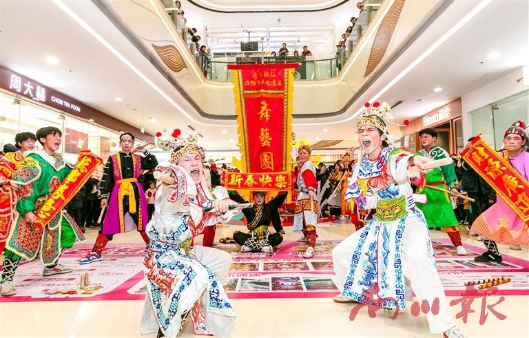 29608 次浏览 02-06市民在万达广场观看潮汕英歌舞。特约通讯员 罗川 摄2月5日,记者从南川区商务委获悉,今年春节期间,商务系统开展了一系列促销活动,围绕“非遗贺新春”“巳喜临门满额赠礼”“消费满399元赠电影票”等主题,