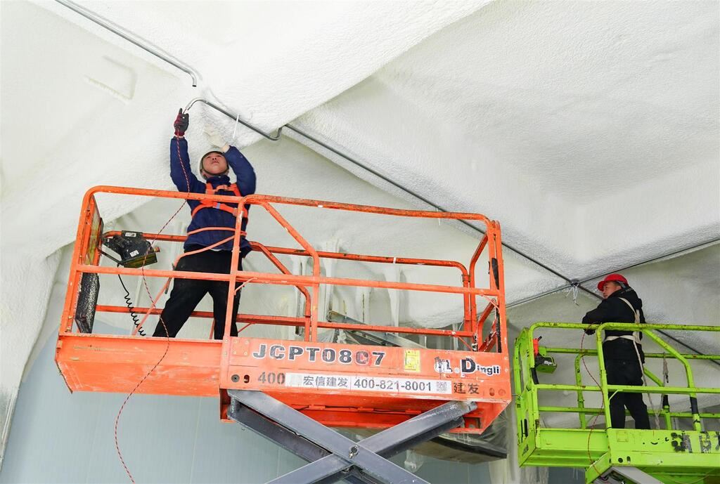 8004 次浏览 03-06工人在冷藏冷冻库安装电线。记者 陈珊 摄工人在外墙安装管道。记者 陈姗 摄主体已完工的昌达智慧物流园。记者 陈珊 摄2月24日,在南川昌达智慧物流园,工人正在加紧冷藏冷冻库聚氨酯、防火涂料喷涂,月台、
