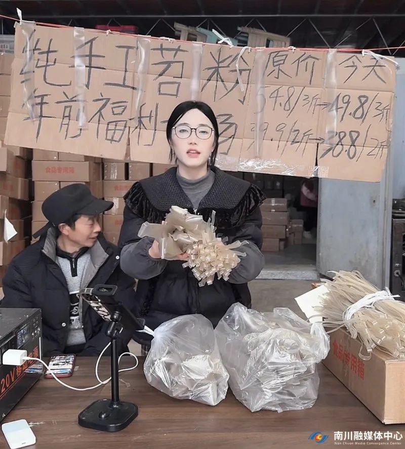 41667 次浏览 02-272月11日清晨,城市还笼罩在一层薄雾中,智敏已经稳稳地架好手机,开始了新一天的视频直播。她面带微笑,一边与网友亲切互动,一边熟练地介绍着家乡的特色物产。智敏在直播间售卖红苕粉。记者 邓的 摄眼前这位朝
