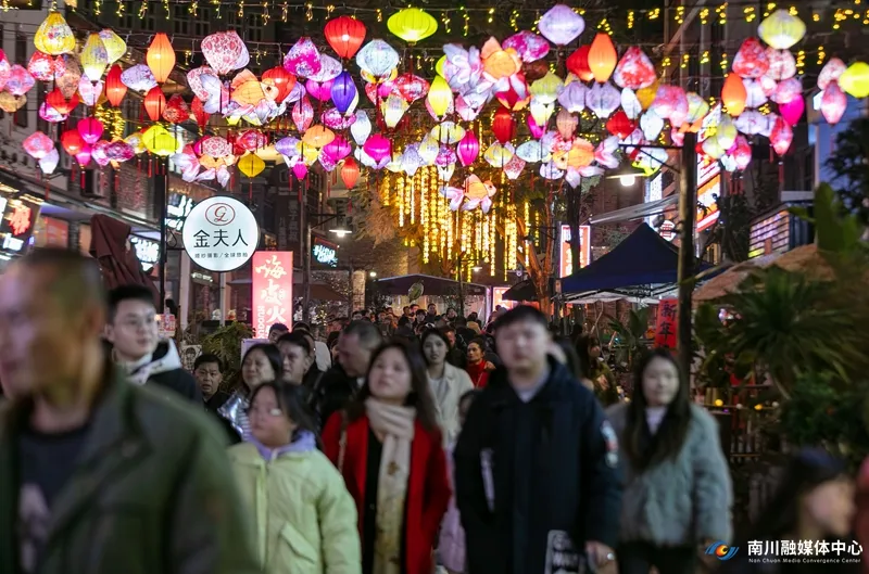 红火的灯笼、喜庆的春联、热闹的灯会……春节期间,南川区文旅市场年味十足,人气爆棚。2月1日,南川东街的夜晚灯火辉煌,吸引众多游客前来游玩。通讯员 罗川 摄据区文化旅游委数据,1月28日至2月4日,全区