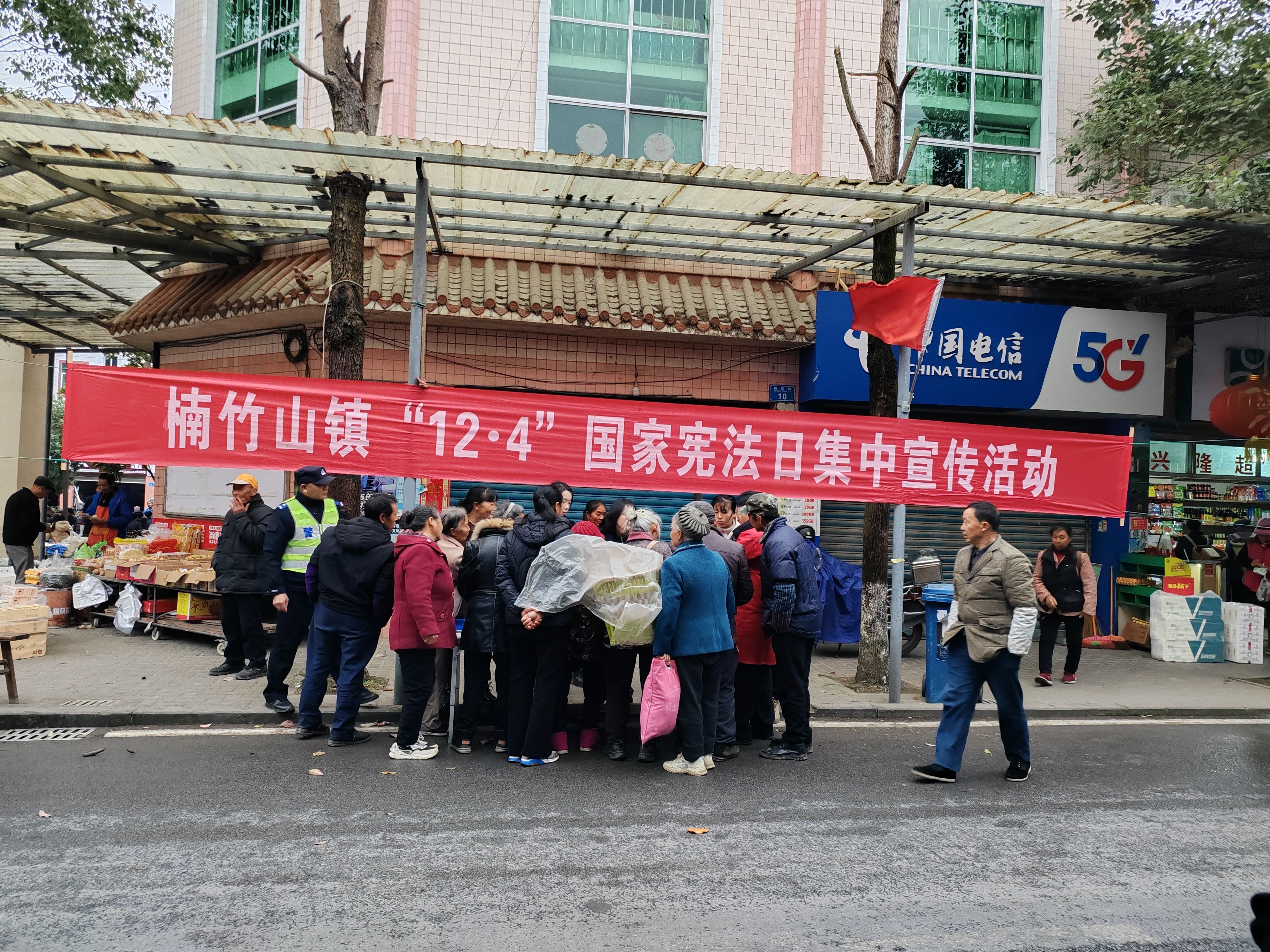 10130 次浏览 12-11为切实提升群众的宪法意识和法治素养,楠竹山镇开展国家宪法日宣传活动。活动现场,工作人员通过设置宣传台、发放宪法宣传手册等形式,向过往群众普及宪法基本原则、公民基本权利与义务等法律知识,营造了“宪法至上