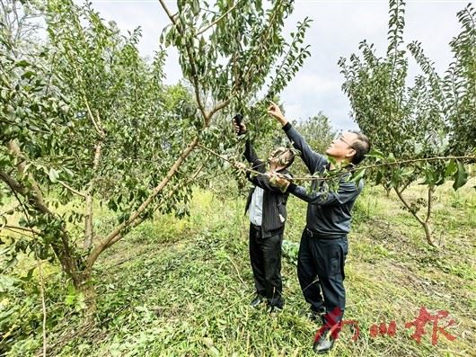5686 次浏览 11-13农业专家(右)在指导农户开展果树修枝。见习记者 卢娅玲 摄日前,南川区农业农村委在南川古花镇天水村举办农民素质素养提升培训班。在天水村社区教育学习中心,常年分散在山林、田地里的农户们聚在一起,全神贯注