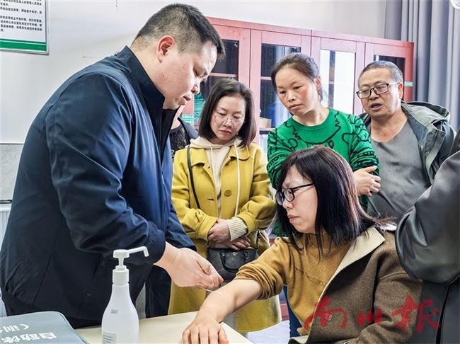 13273 次浏览 04-23杨孝勇为学员展示针灸治疗。记者 易浩然 摄“银针再倾斜15度,指尖感受皮下组织变化……”近日,在重庆市南川区大观片区基层医疗卫生机构实训中心教室内,南川区中医医院针灸理疗专家杨孝勇正握着学员的手调整针