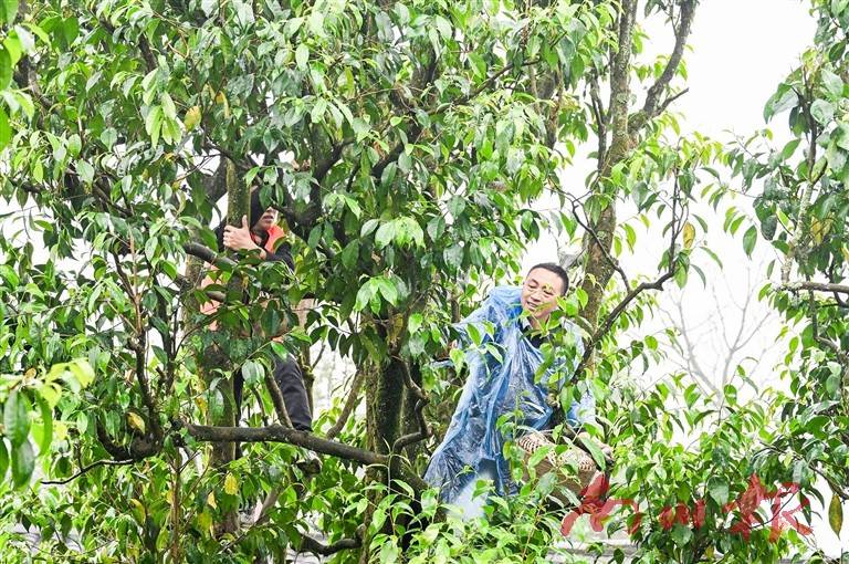“开山啰,茶醒啰!爬树啰!采茶啰……”伴随茶农嘹亮的歌声